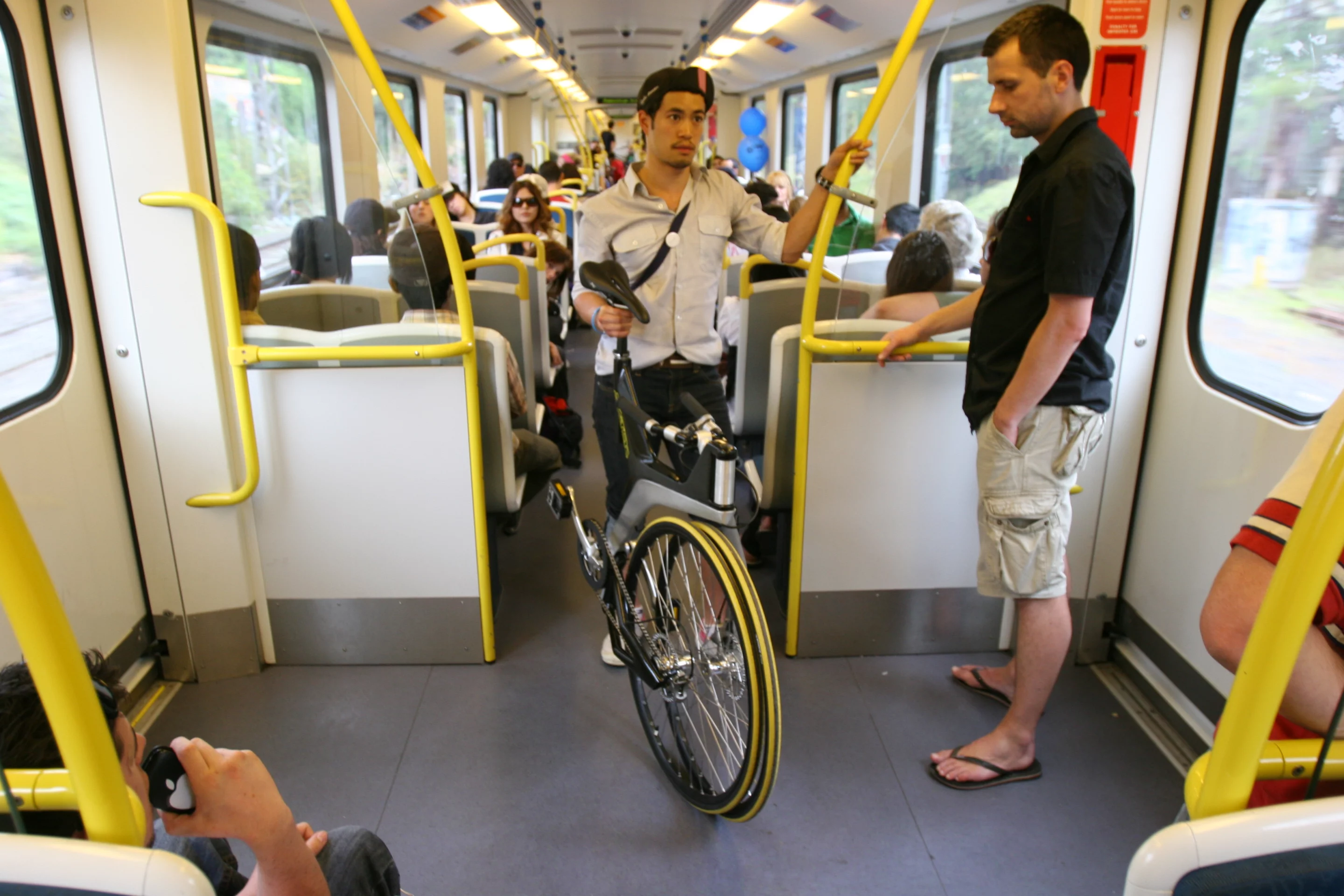 June 5, 2009 Using pedal-power to get to work makes sense - get fit, reduce your carbon footprint, save money and probably time too - but for many cyclists, negotiating the urban sprawl often means using other forms of transport like trains for part of the journey. That's where the folding bike comes in. We've seen some cracking designs in recent times that incorporate large wheels and make the bike easier to handle when folded, and this award winning example from student designer Robert Dumaresq ticks all the boxes. Called the Switch Commuter Bike, Dumaresq's lightweight, fast-folding design takes up only the footprint of one wheel when collapsed so it can easily be maneuvered in crowded environments.