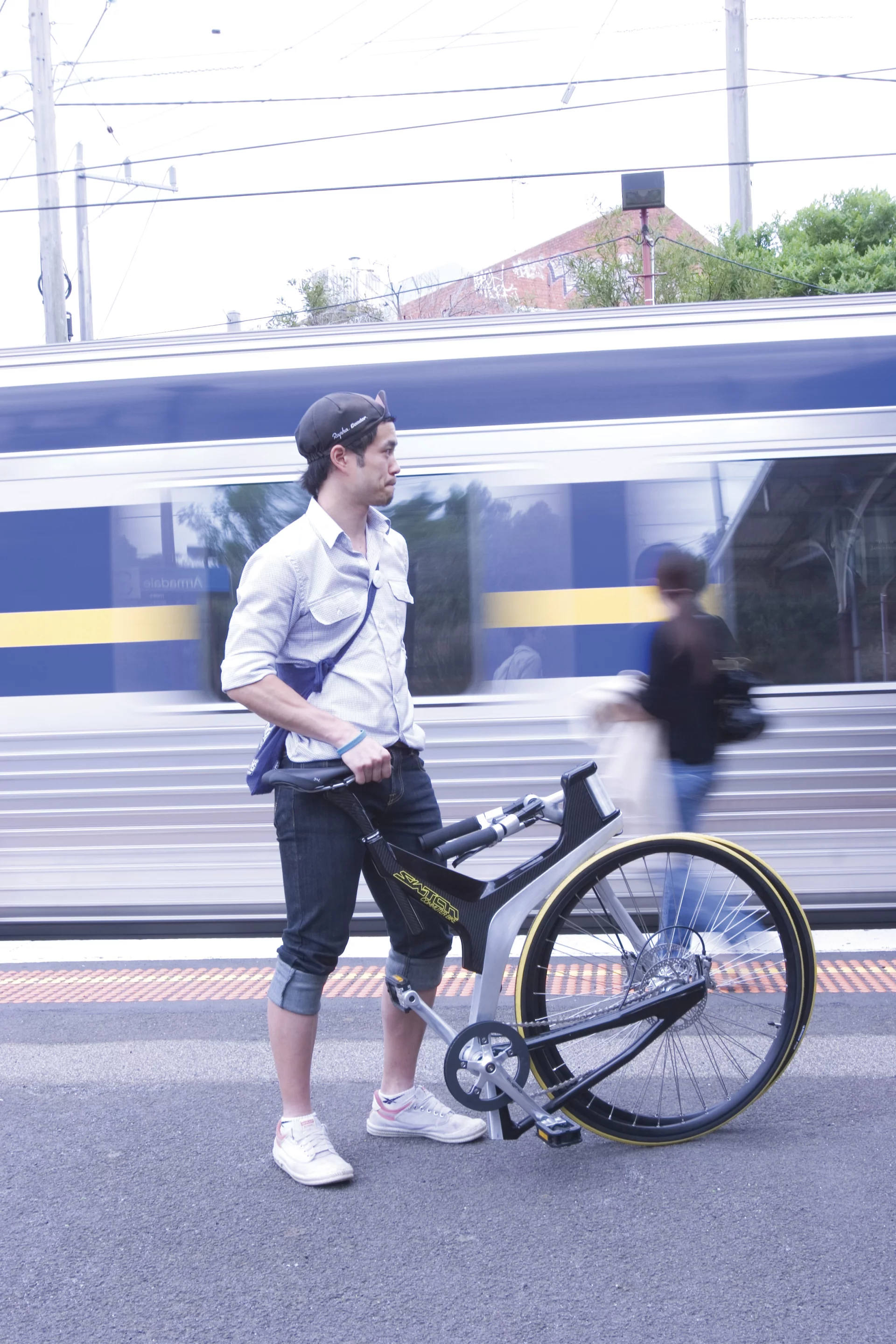 The Switch is designed to collapse in "one smooth motion", folding at the rear stays and head-stem so the main section of the frame remains intact. When unfolded, the weight of the rider keeps the frame open and rigid rather than relying on a structural locking mechanism. A spring loaded ball bearing also stops the rear section of the frame from unfolding prematurely when boarding a train or stowing the bike in a car trunk.