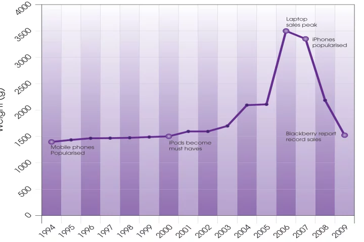 UK Research shows that the doubling of weight of the handbag between 2002 and 2006, due to the adoption of laptops, has been completely reversed in just three years by the adoption of smartphones, replacing laptops and filofaxes.