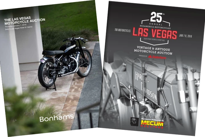 The world's two dominant motorcycle auction houses hold back-to-back auctions in Las Vegas later this week (Bonhams on January 7 and Mecum Mid-America on January 8-9) selling 850 of the world's most desirable motorcycles. We preview the auctions.