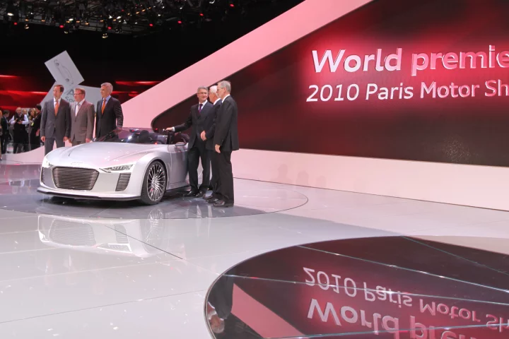 Audi unveiled the e-tron Spyder concept at the 2010 Paris Auto Show this morning.