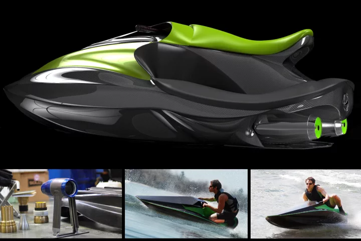 The Green Samba is set to become the Personal Water Craft V 3.0 – it will do the same 65 mph as a 260 bhp sit-down, doesn't emit any noxious gases, makes no noise at all, has agility far better than a stand-up PWC, and runs for three hours plus.
