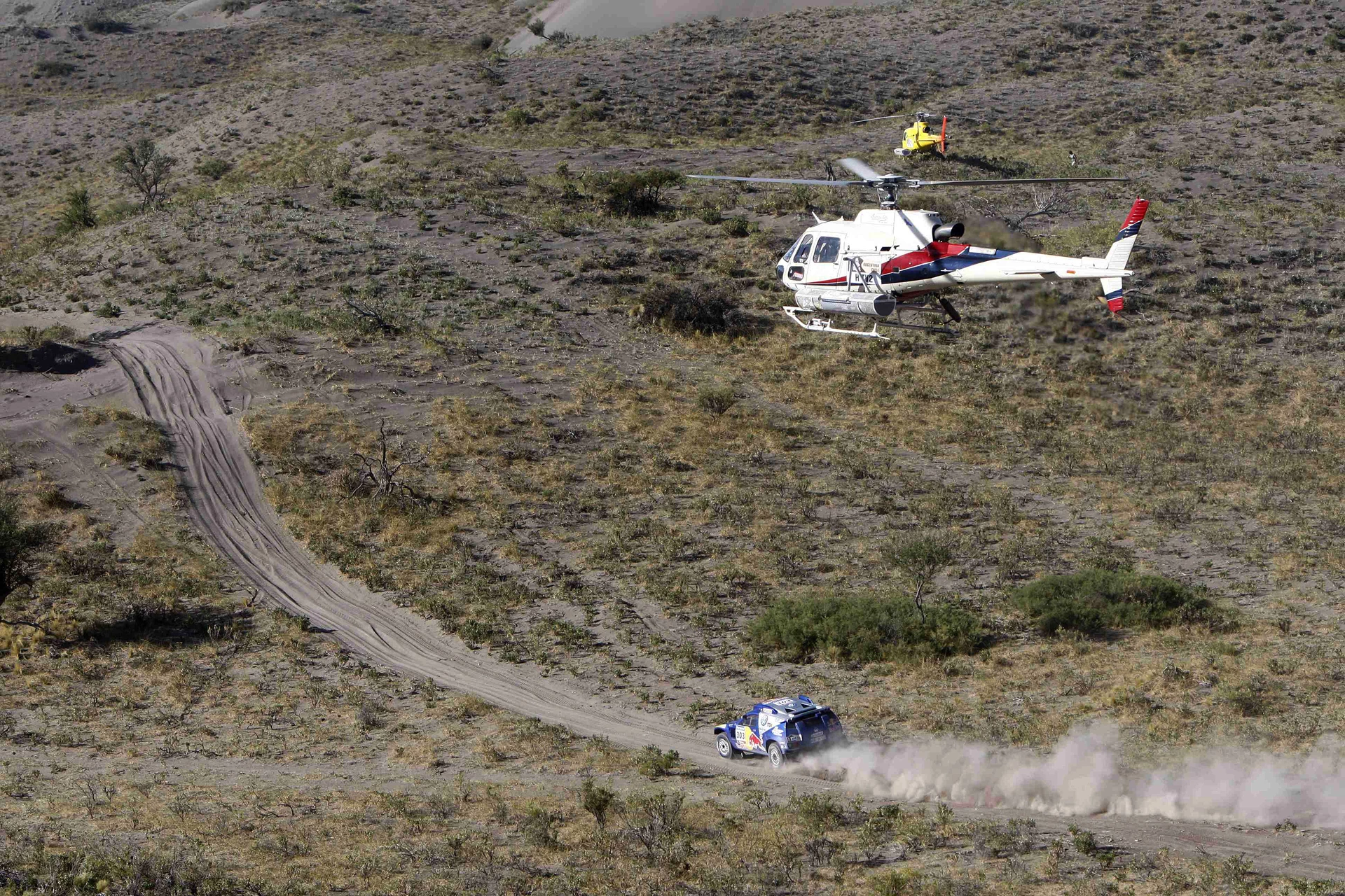 1 Carlos Sainz/Lucas Cruz (E/E) Volkswagen Race Touareg 2 1h 20m 18s (2) 47h 10m 00s 2 Nasser Al-Attiyah/Timo Gottschalk (Q/D) Volkswagen Race Touareg 2 1h 19m 42s (1) + 2m 12s 3 Mark Miller/Ralph Pitchford (USA/ZA) Volkswagen Race Touareg 2 1h 21m 21s (5) + 32m 51s 4 Stéphane Peterhansel/Jean-P. Cottret (F/F) BMW X3 CC 1h 20m 50s (4) + 2h 17m 21s 5 Guerlain Chicherit/Tina Thörner (F/S) BMW X3 CC 1h 20m 25s (3) + 4h 02m 49s 6 Carlos Sousa/Matthieu Baumel (P/F) Mitsubishi Racing Lancer 1h 25m 31s (15) + 4h 31m 45s 7 Giniel de Villiers/Dirk von Zitzewitz (ZA/D) Volkswagen Race Touareg 2 1h 21m 23s (6) + 5h 10m 19s 8 Robby Gordon/Andy Grider (USA/USA) Hummer 1h 21m 40s (7) + 6h 02m 24s 9 Orlando Terranova/Pascal Maimon (RA/F) Mitsubishi Racing Lancer 1h 22m 10s (8) + 6h 04m 47s 10 Guilherme Spinelli/Filipe Palmeiro (BR/P) Mitsubishi Racing Lancer 1h 24m 50s (13) + 6h 13m 41s