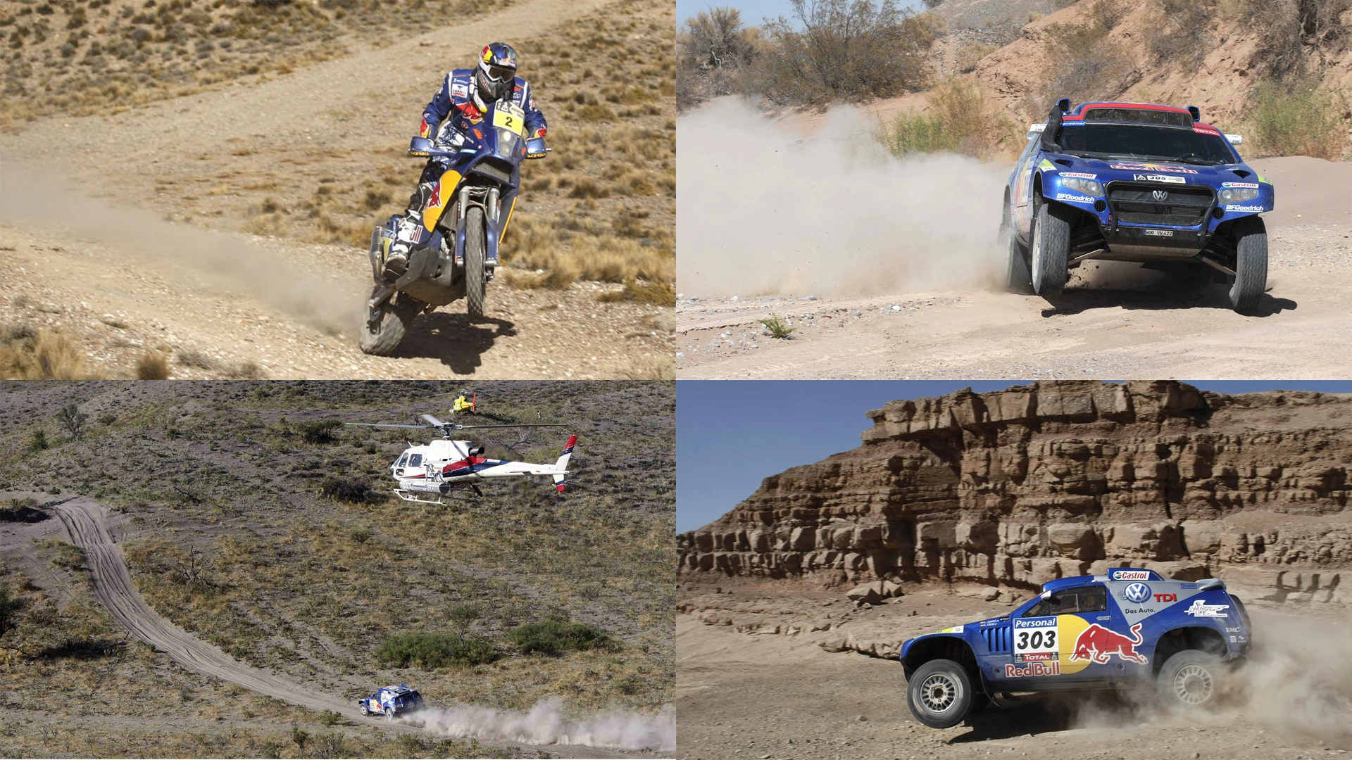 Volkswagen’s turbo diesel technology completed a comprehensively successful title defence in the 2010 Dakar Rally, finishing 1-2-3 with WRC legend Carlos Sainz (bottom right) finally winning the most prestigious “raid” in the world at his fourth attempt. In the motorcycles, Cyril Depres (top left) won his third Dakar Rally, after 9000 km across Argentina and Chile. He rode in triumph into Buenos Aires to complete his third Dakar victory and the tenth consecutive victory for Austrian brand KTM. Indeed, apart from Sainz and Quad bike winner Marcos Patronelli who finished second last year, all the winners were old hands. Yamaha dominated the Quads as usual with a 1-2-3, the “tsar” (Russia’s Vladimir Chagin) won the truck category for the sixth time, driving a Kamaz (bottom left). The rugged Russian Kamaz truck won EVERY stage in the 2010 event, finished 1-2 and picked up a ninth Dakar win.
