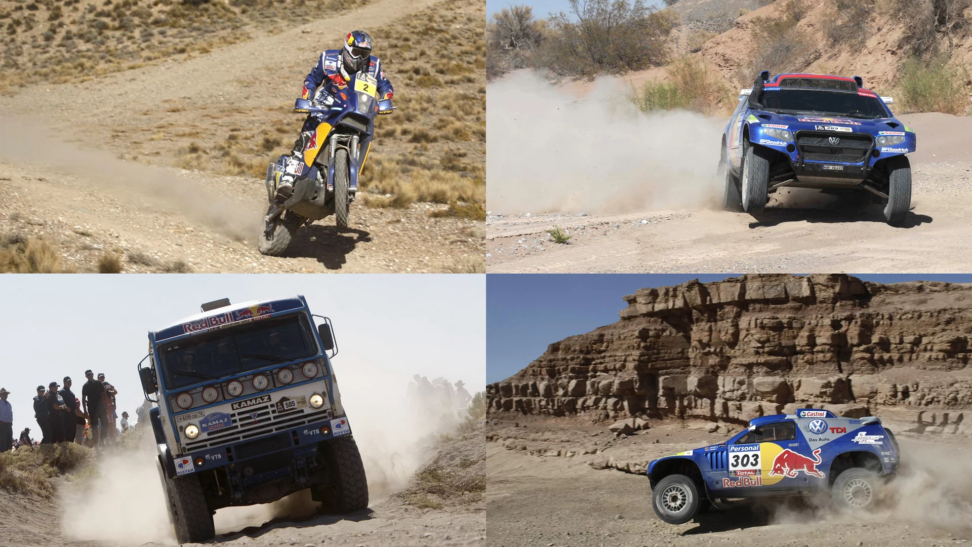 Volkswagen’s turbo diesel technology completed a comprehensively successful title defence in the 2010 Dakar Rally, finishing 1-2-3 with WRC legend Carlos Sainz (bottom right) finally winning the most prestigious “raid” in the world at his fourth attempt. In the motorcycles, Cyril Depres (top left) won his third Dakar Rally, after 9000 km across Argentina and Chile. He rode in triumph into Buenos Aires to complete his third Dakar victory and the tenth consecutive victory for Austrian brand KTM. Indeed, apart from Sainz and Quad bike winner Marcos Patronelli who finished second last year, all the winners were old hands. Yamaha dominated the Quads as usual with a 1-2-3, the “tsar” (Russia’s Vladimir Chagin) won the truck category for the sixth time, driving a Kamaz (bottom left). The rugged Russian Kamaz truck won EVERY stage in the 2010 event, finished 1-2 and picked up a ninth Dakar win.
