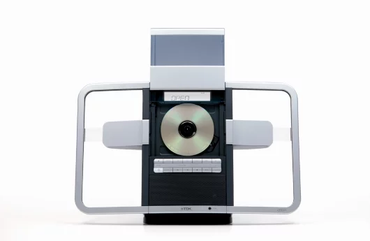 The mini subwoofer adds distortion free low-end deep bass response while the 'invisible' flat panel speakers emit pure, rich acoustic clarity. Traditionally speakers create a narrow sound field through the piston-like movement of a single cone. NXT technology creates sound by vibrating the entire speaker panel. The NX-02CD's motorised door opens upwards for extra 'space-age' appeal and the bang-per-buck is high at just AUD$299, complete with a slim remote control.