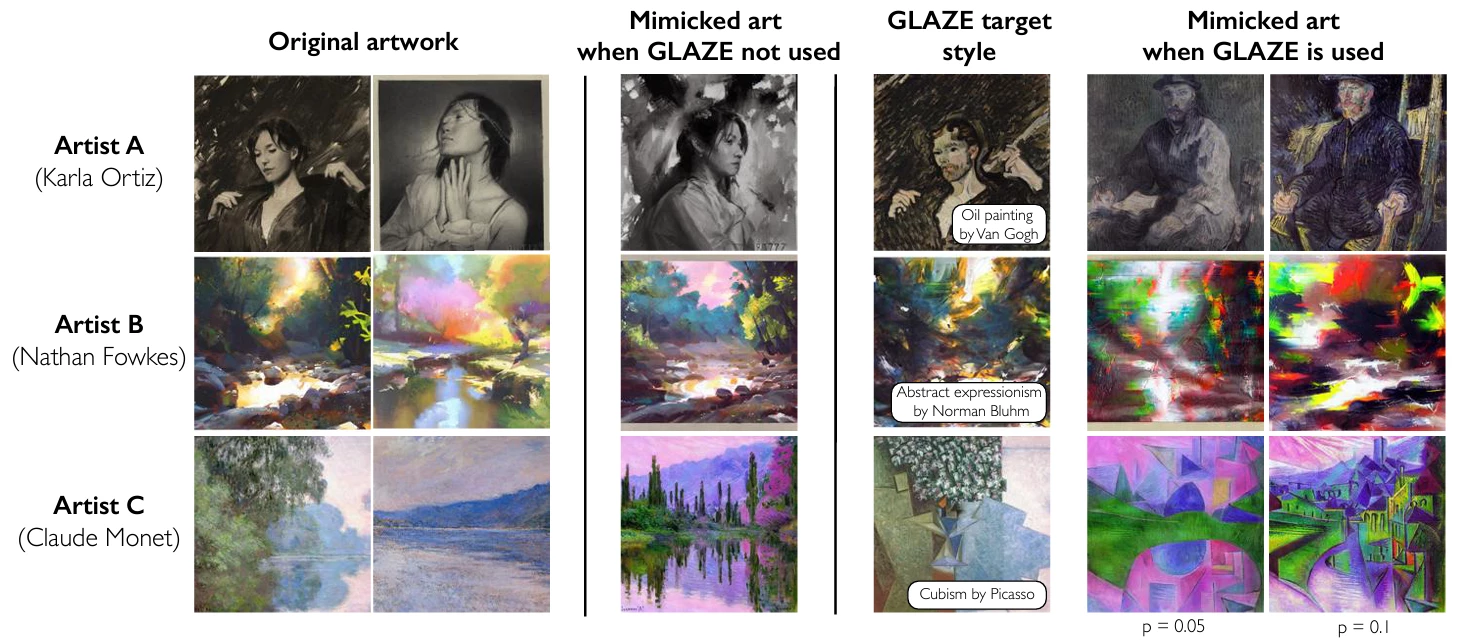 In the meantime, though, a University of Chicago team has created a kind of interim solution for digital artists. The Glaze app allows artists to make subtle modifications to their work before uploading it to be seen by the public, and potentially by thieving AI training repository collectors.