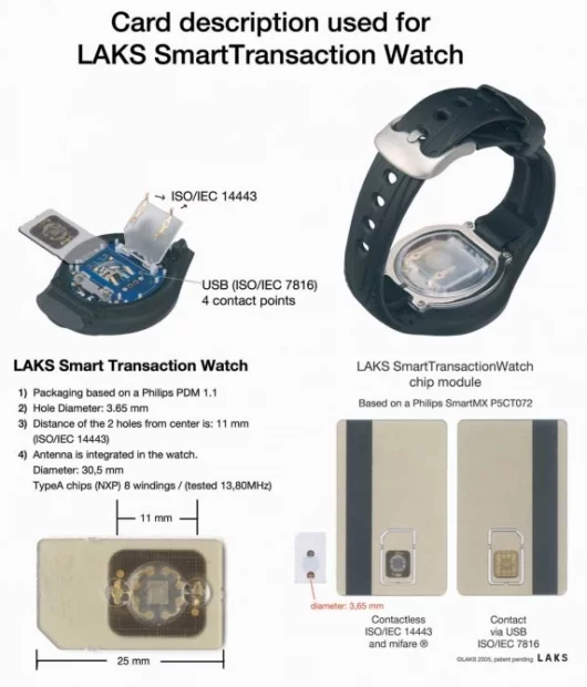 LAKS has over 20 years experience manufacturing high quality watches and leads the world in the incorporation of new technologies into watches. In 2006 LAKS launched the first MasterCard® PayPass™ approved watch, which has been successfully deployed by banks around the world. LAKS Smart Transaction Watch 2 provides a wide range of benefits and advances in technology to both card issuer and card holder and is now available through Laks in Europe or Abnote in the United States and Canada.
