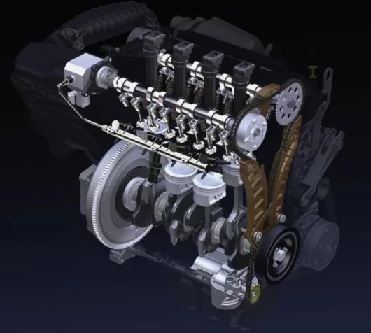 Both have dual overhead camshafts and four valves per cylinder driven by a chain. The engine block and cylinder head are cast from a special aluminium alloy and feature a motorsport-derived bedplate design.