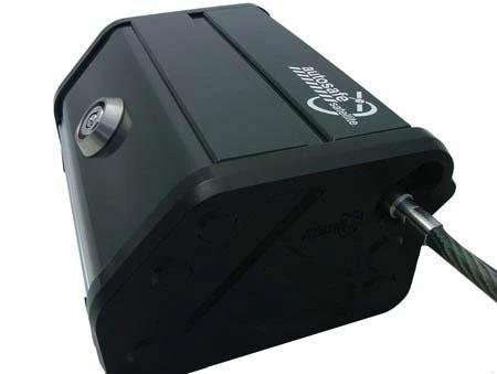 We weren’t aware of a solution until we saw the autosafe mentioned by the Red Ferret. There are different versions of the autosafe available that can hold a bunch of smaller items (sunnies, PDA, satnav etc) in a lightweight 1.6 kg 185 x 150 x 97 mm UKP50 (US100) box through to a 492 x 395 x 210 mm UKP150 (US$300) jumbo-size big enough for a laptop bag. The boxes are secured using a wire-rope cable to a chassis mounted seat base, seat hinges or baby seat fixing points so there’s no drilling required.