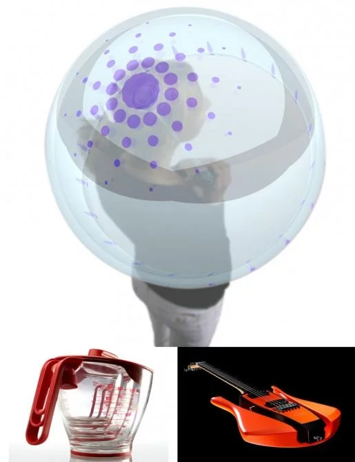 July 9, 2006 If you’ve ever been there, you’ll know the dangers – a crowded city footpath on a wet day during rush hour. Dodging hundreds of probing, rapier-like and potentially eyeball-piercing umbrella tips is not fun and thanks to RKS Design, it’s now avoidable. The Bumpbrella is an inflatable umbrella that utilizes a bicycle pump mechanism in the handle. By pumping, it inflates into an umbrella that one can see through, thereby protecting you against the elements and from getting poked by another umbrella. While we're on the subject of RKS Design, the company web site is worth a look if you're into innovative thought - from measuring cups that would enhance any kitchen through to guitars that are used by the likes of Rickie Lee Jones, Ron Wood and Dave Mason, RKS is an impressive outfit.