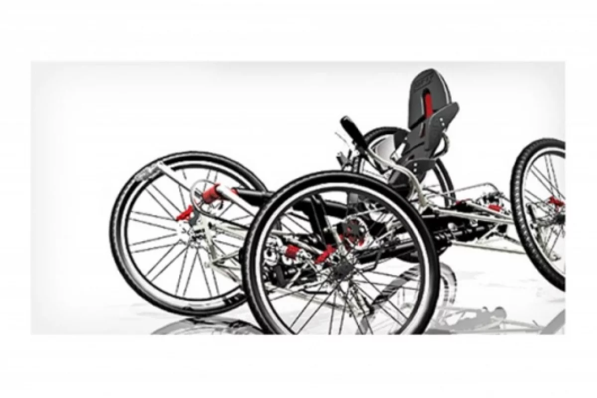 The CarvX from owner/designer and inventor Rob Crins takes an aluminum frame 14-speed, four-wheeled recumbent bike and and adds four independent double wishbone suspensions, four hydraulic disc brakes and the ability to steer the machine with the aid of a tilting mechanism.
