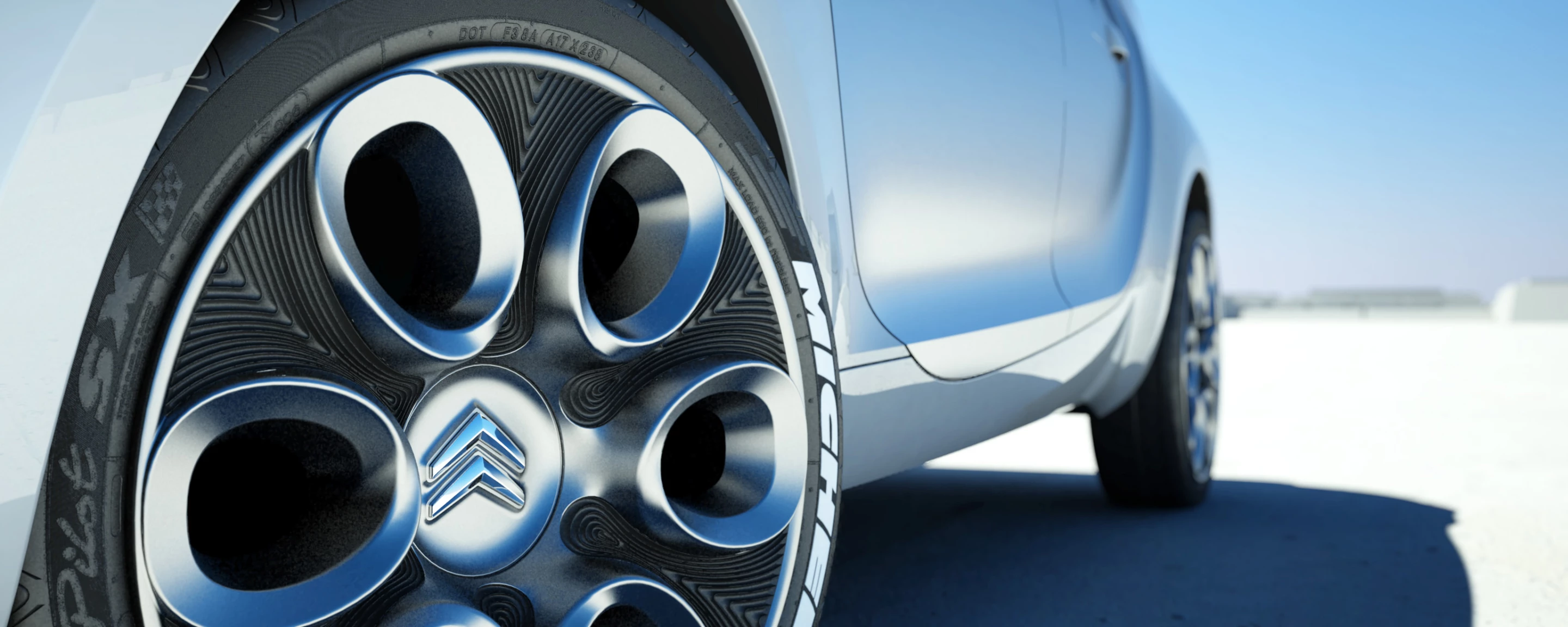 Citroën worked with Michelin on the development of low-profile tyres with a large diameter and limited width. The low ground friction area limits fuel consumption and, at the same time, tyre production costs are kept under control since the manufacturing process requires only a small amount of rubber.
