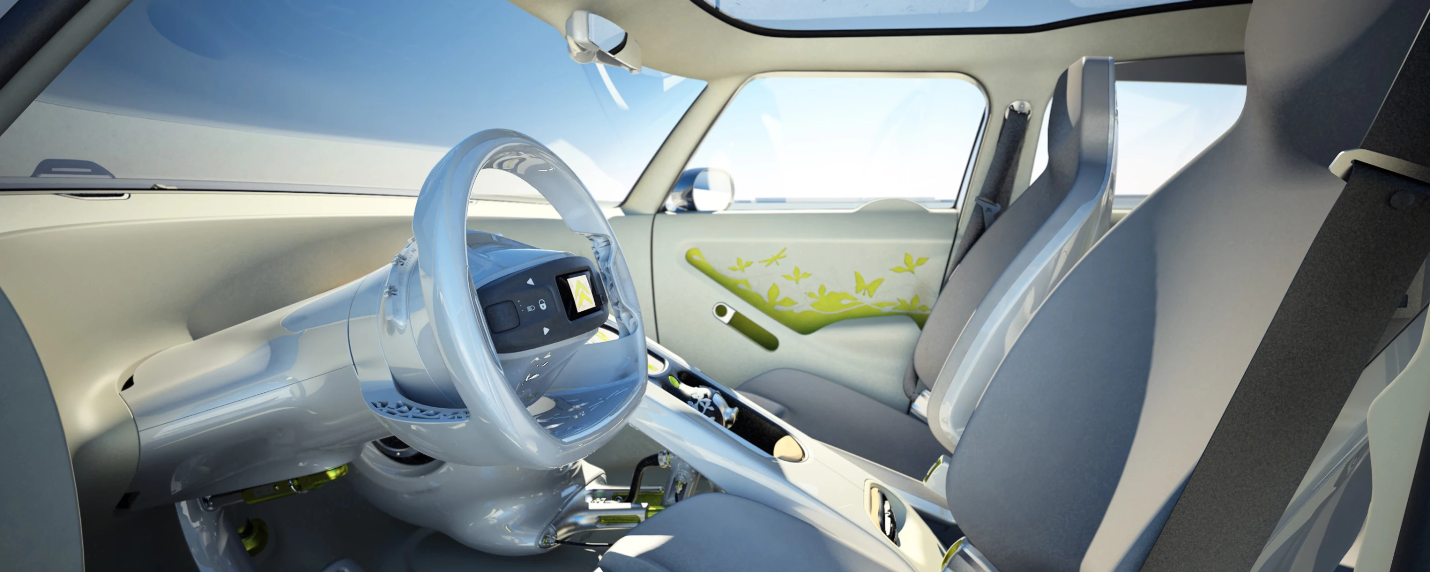 C-Cactus is also an original and ingenious car on the inside. The design cut-outs, choice of materials, patterns and colours give the cabin a minimalist, attractive and airy look.