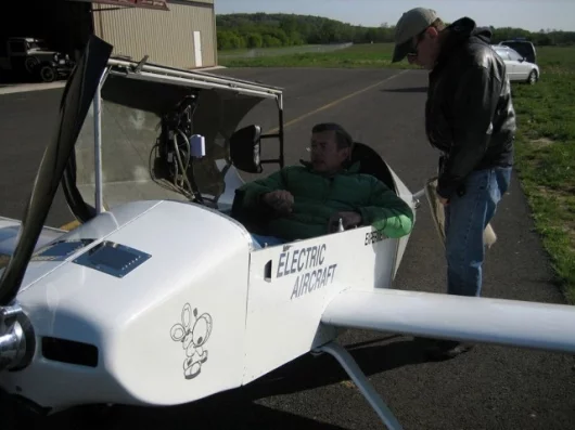 August 19, 2008 The ElectraFlyer C is an electric aircraft based around the now defunct 1980s Moni kit plane designed by John Monnett which features in the Smithsonian Air and Space museum no less. The original and unreliable KFM 107 two-stroke air-cooled motor has been replaced with a modified version of ElectraFlyer’s US$8500 5.6 kWh lithium battery and US$4200 propulsion parts kit, will top 90 mph, fly for 90 minutes plus and recharges from a household power outlet in six hours at a cost of, would-you-believe, sixty cents. That’s serious bang-per-buck for an aircraft and bodes well for the coming era of personal flight being based around sustainable energy and as it’s almost totally silent, sustainable hearing without the need for earplugs. Silent aircraft, like silent RVs, are the way to a sustainable future for the sport.