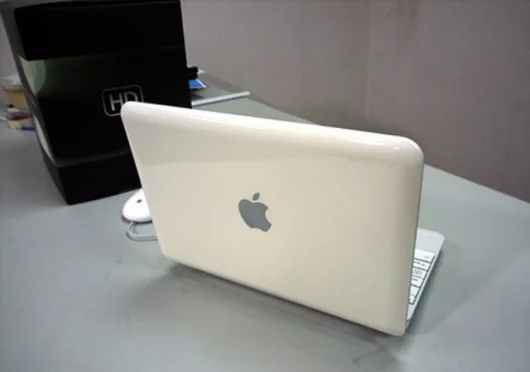 Though its exact origins remain a mystery, the fake surfaced in a Flickr photo set earlier this week and has attracted plenty of commentary (here and here for example). The specs provided tell us that that the machine has a 10" WSVGA LED (1024x600), weighs 2.2 lbs, uses a 1.6GHz Intel Atom processor with 2GB RAM and a 320GB hard drive running on XP Pro+OSX 10.5.5. Another photo set shows the tinkering process involved in creating the "unofficial nano", which, especially if it's being sold and not just the one-off work of a very enthusiastic fan, must have lawyers in the Apple camp furiously straightening their neck-ties.