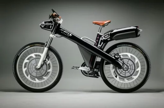 The aluminum frame hybrid weighs in at just 40 kg (with batteries) and features 100 mm suspension forks and 400 mm front disc brakes up front, plus regenerative braking to extend the battery life. Recharging time is estimated at 3 – 6 hours.
