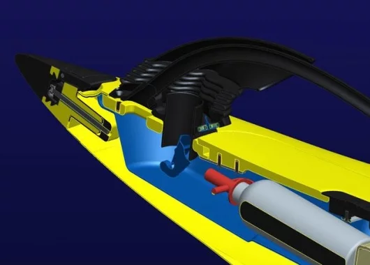 Running a motor that's often underwater had its challenges too. At standstill, with the rider sitting atop and the engine dead, the JetBoard is 75% submerged - hardly conducive to longevity of all those complex internals. This design challenge was met with a state-of-the-art inflatable sealing system similar to that used in F18 aircraft, spacecraft and sub-marines and this prevents water intrusion into the engine compartment.