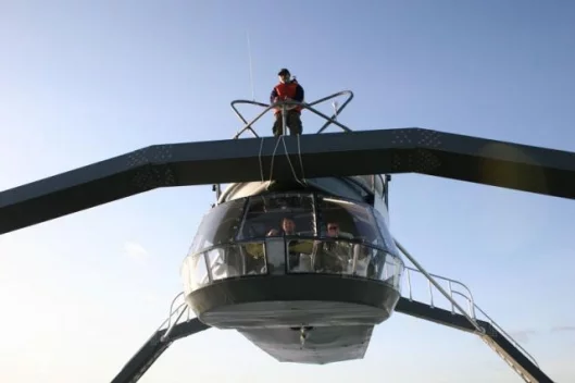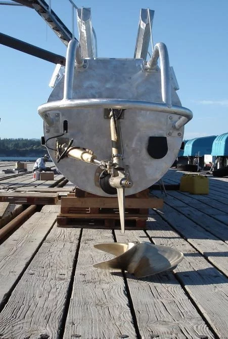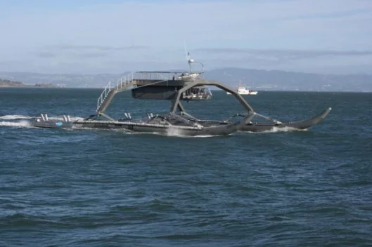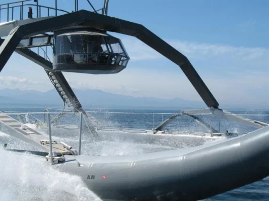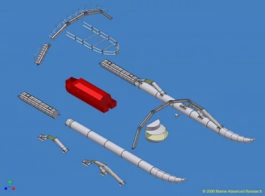 The engine pods are mechanically separate from the main hulls and can be switched to other pods with a different propulsion system. Alternatively, two sets of identical engine pods keep the vessel operational at all times, even when engines have to be serviced or repaired.
