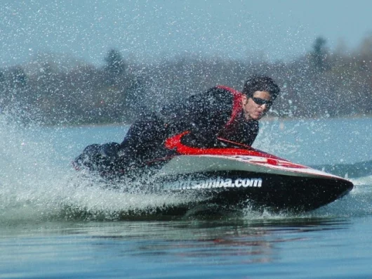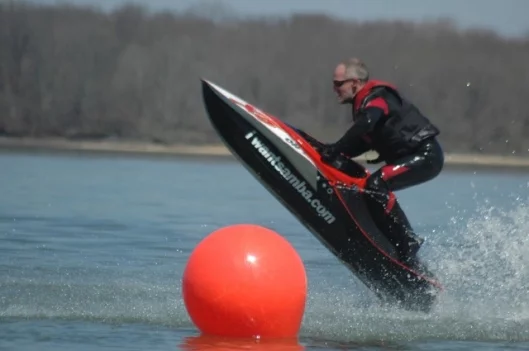 “Professional freestylers will be able to do things with this machine that will be incredibly spectacular and we absoluetly believe we have created a new class of PWC racing. In terms of speed thropugh a set of boiuys, and close skilled racing, the Samba is set to become the watersport equivalent to a Formula One car. It's light, so it doesn't take much wake to give it lots of air, and it can manhandled to do far more turns or flips than a normal jet ski that we're really looking forward to seeing what the professional stunt riders can do with it. You can get much more air of a wake than a stand-up rider. You can flip it and loop it far easier than a stand-up.”