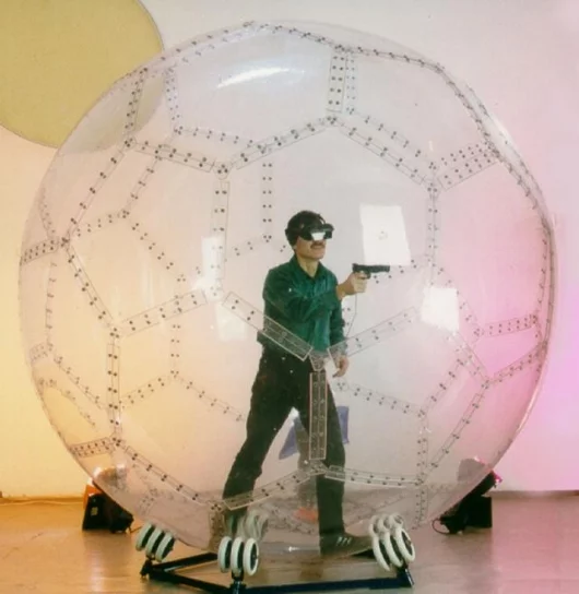 A decade ago VR inputs were limited to the eyes and ears being fed enough computer-generated information to offer rudimentary sort-of-believable virtual worlds. The human brain seems happy to suspend disbelief and accept many crude kludges in order to roleplay along with a VR event, but the missing factor has been the ability to give the body the same sort of corresponding feedback as the brain. You can’t simulate true human movement with any authenticity without the exertion normally accompanying it – until the invention of the VirtuSphere.