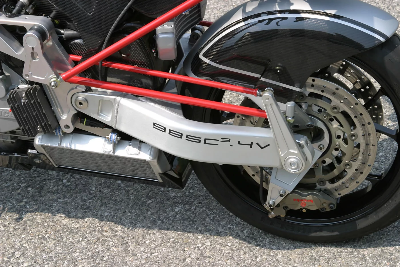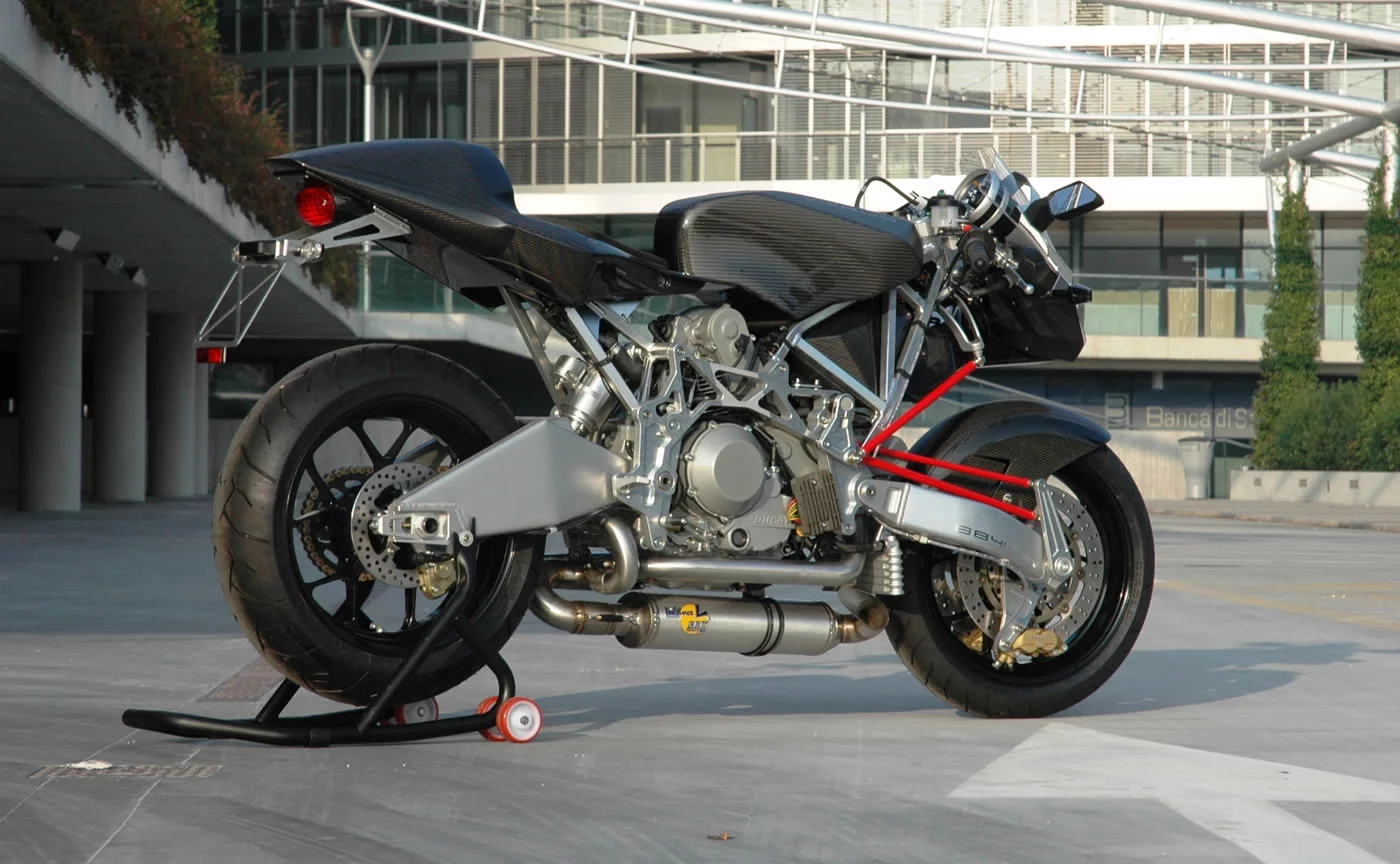 The base model 984 C3 2V comes with a 100 bhp two valve 1000DS air-cooled Ducati engine, weighs in at a featherweight 150 kg and sells for EUR 33,400 (US$47,000). Just to put that weight in perspective, a MotoGP bike weighs 148 kg.