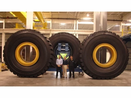 July 31, 2008 Mine operators are increasingly adopting larger equipment to lower operating costs and a new class of ultra-large machinery is demanding bigger tyres. Earlier this week, Titan Tire shipped its first giant 63-inch off-the-road (OTR) tire and wheel assemblies. The tires, each measuring nearly 14 feet tall and weighing approximately 12,500 pounds, are being shipped to Canada’s oil sands for use in mining applications and Titan envisages a worldwide market of 900 tires a year.
