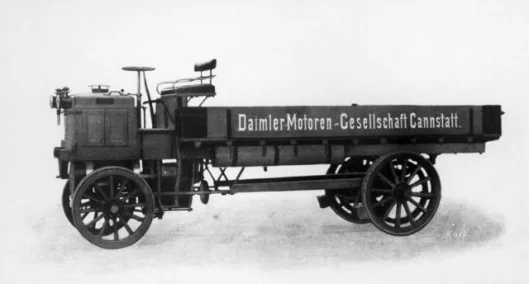 It was one of the greatest talents of inventor Gottlieb Daimler to find ever more applications for his engine. He came up with the motorcycle, the motorized handcar, a motorized fire-fighting pump, and – eventually and almost inevitably – with the truck. Back in 1896, he set up the first truck on iron-clad wooden wheels – a type of carriage without a drawbar but with an engine instead.