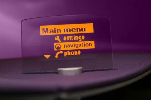 Inside the iQ, the chrome finished instrument panel has a simple geometric form, while the centre console flows in a manta ray-shape that contains the compact heating unit. A single central dial displays the interior temperature and ventilation controls directly in the driver’s eyeline, with a three-dimensional three-in-one speed, rpm and fuel level read-out mounted above the steering column. The iQ also features a mock snakeskin steering wheel trim, purple accents in the seats, door trims and dashboard. Audio and navigation controls are integrated into the steering wheel, with the route-finding information projected in a head-up display.