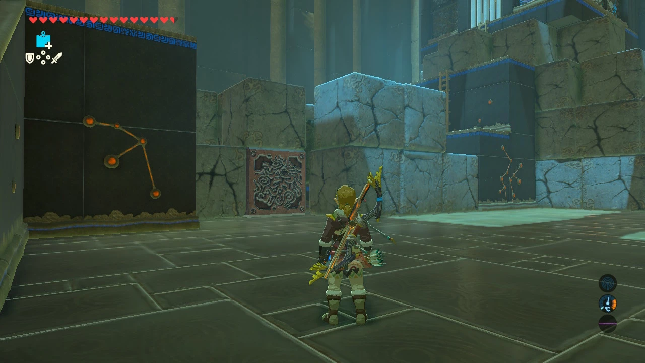 Inside the shrine, the breakable blocks and the hint "Buried Secrets" will likely tempt you to start throwing bombs with abandon – but not so fast. You'll want to leave a path over to the ladder in the middle of the temple. If you've messed up, just leave the temple and come back inside to reset the puzzle.