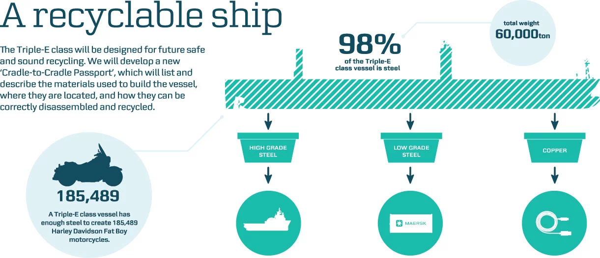 The new, giant container vessels will be known as Triple-E, based on the three main purposes for their creation: Economy of scale, Energy efficiency and Environmentally improved.