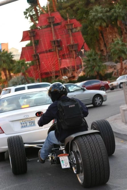 Developed with the aim of creating "a radical new vehicle that would offer unparalleled performance... combining advanced technologies from Formula 1 racing, aerospace, and motorcycles", TriRod Motorcycles' A3 Adrenaline cuts a mean profile with its sleek naked design featuring black carbon fiber body panels, extensive use of chrome, fully adjustable Penske racing shocks, low profile tires and exposed F1 style suspension components.