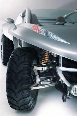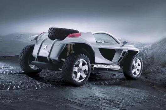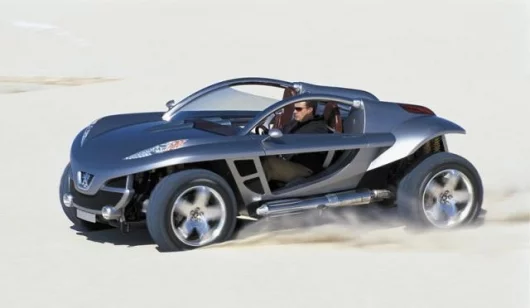 This low-slung Hoggar is a 2-seater designed with recreation in mind. Less than 4 m in length, 2 m wide and 1.5 m high, the lines of the Peugeot Hoggar are reminiscent of the classic dune buggy shape and 'gull-wing' doors are also featured.The interior of Hoggar is a blend of aluminium and leather.