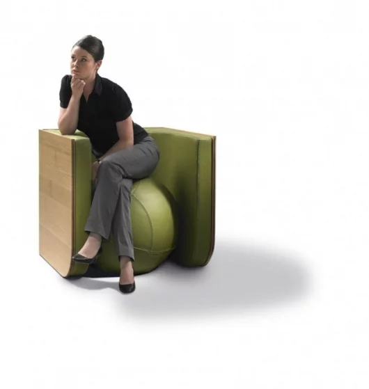 The SwiTCh is handmade from massive oak (which has a a rubber profile to prevent slipping) and fine leather with a foam-filled ball that helps improve posture. A great addition to a space-challenged home workplace.