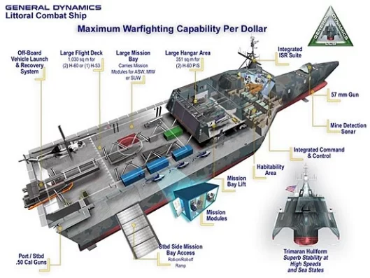 The U.S.S. Inedpendence was built and delivered by General Dynamics, as part of a four-ship evaluation plan. Two were to be built by General Dynamics, two by Lockheed Martin, and the designs were to be evaluated to determine the superior design. Sadly, cost blowouts by both General Dynamics and Lockheed Martin have seen the remaining three evaluation ships cancelled and the Navy is putting together a new bidding program to have the remaining three evaluation ships contracted and built.