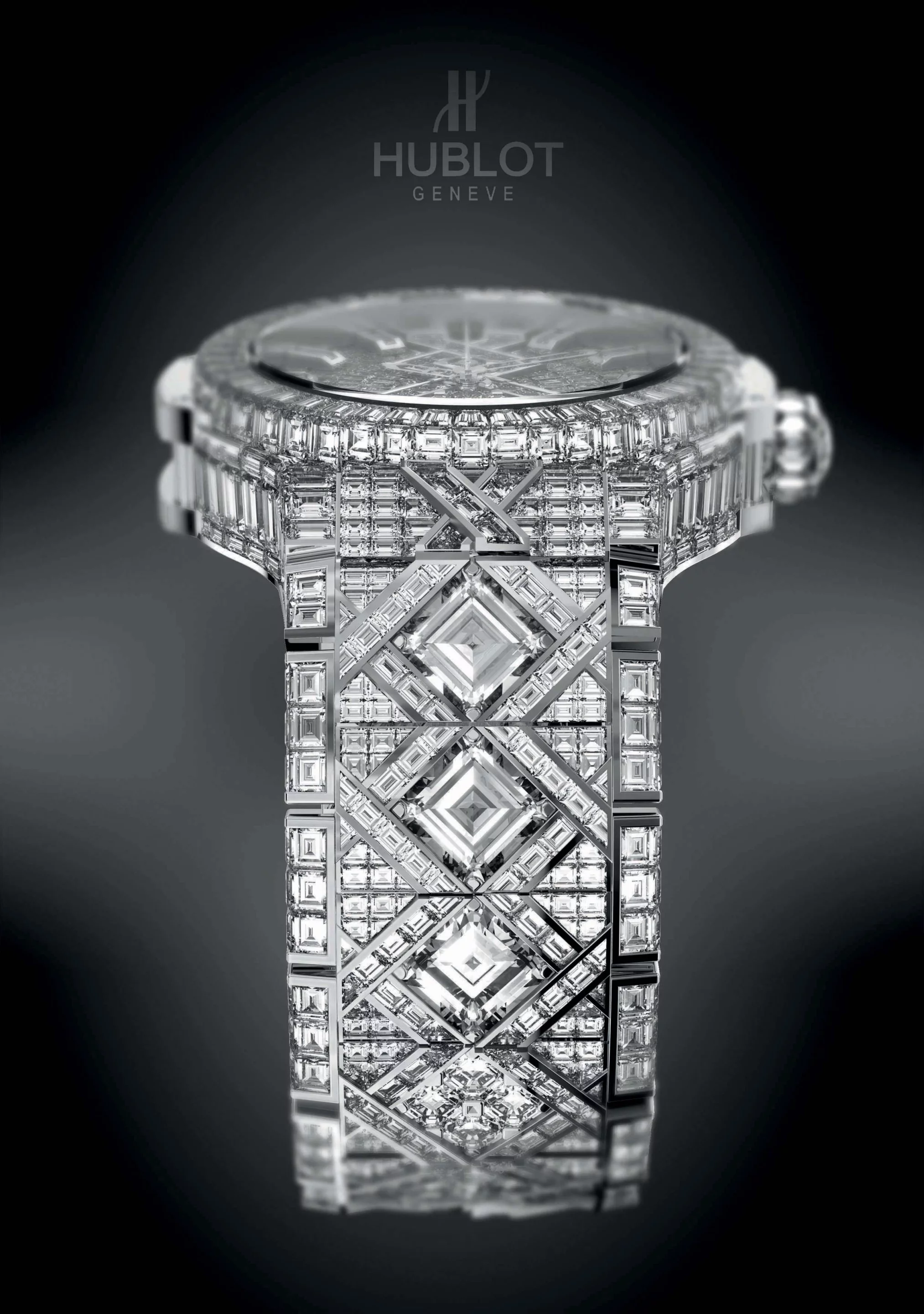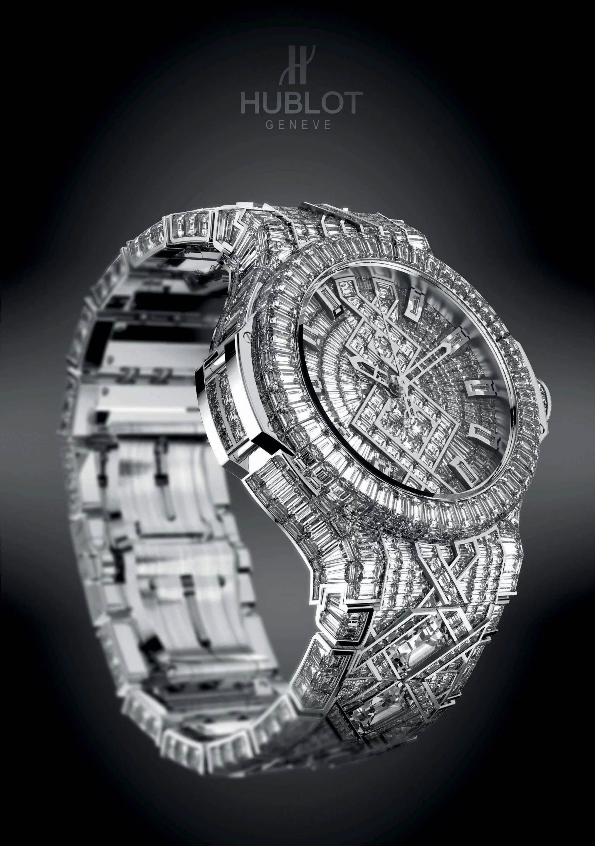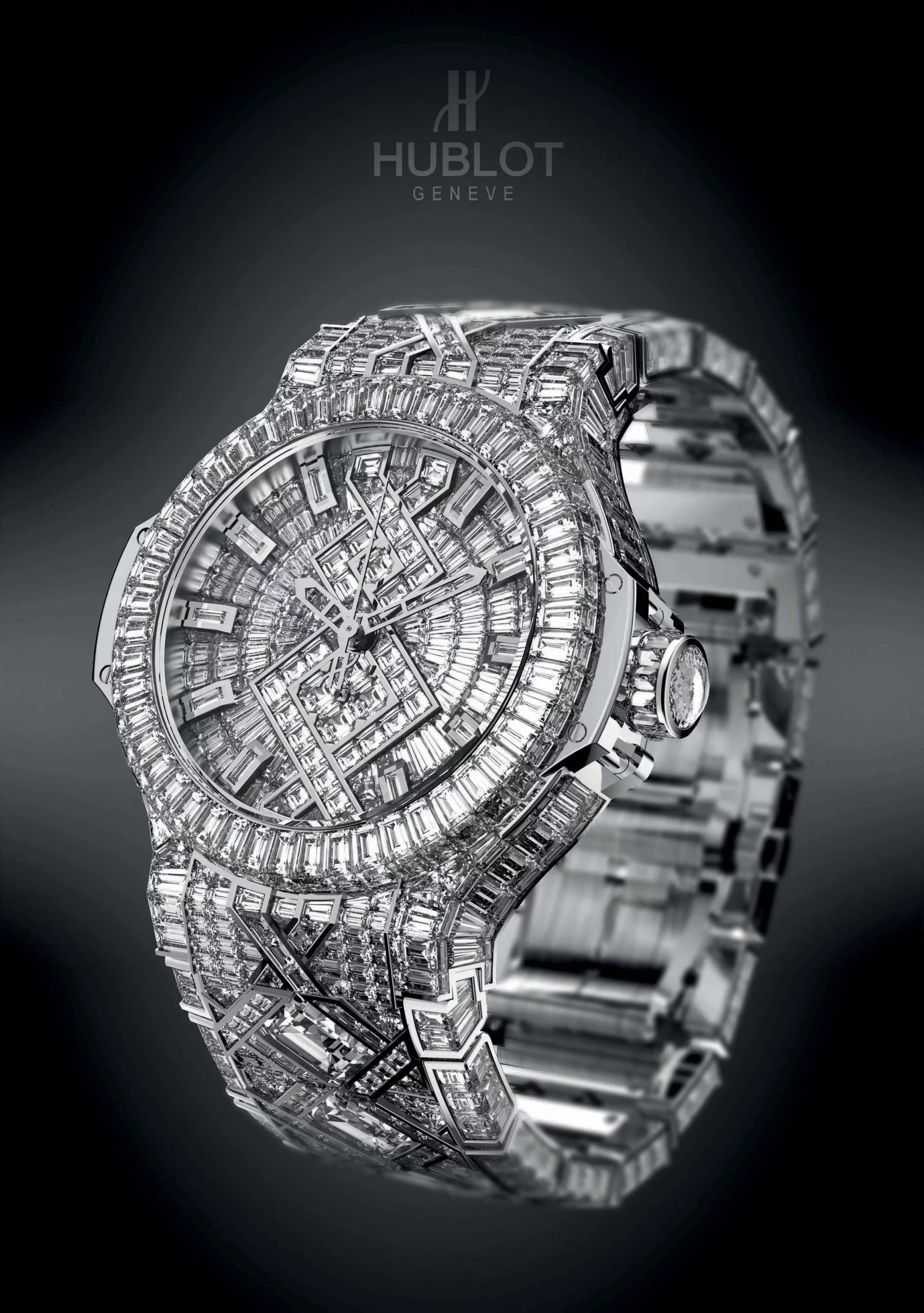 In case you were wondering (like I was), how such massive resources ended up in one watch, a little digging revealed that Hublot was purchased in 2008 by LVMH (Louis Vuitton S.A./Moët Hennessy), a French beverage, accessory and apparel conglomerate, over 40 percent of the shares of which are owned by Christian Dior – yet another luxury product group. No shortage of wealth there.