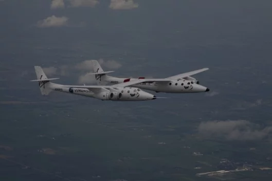 VMS Eve has already flown 16 times, logging over 50 hours and reaching altitudes above 52,000 feet, but this was Sir Richard’s first flight on the aircraft. Interestingly, the starboard hull is not pressurized, so would-be astronauts can get some G-Force experience, including zero gravity. The port hull, where Branson presumably traveled, is pressurized and can carry a range of payloads.