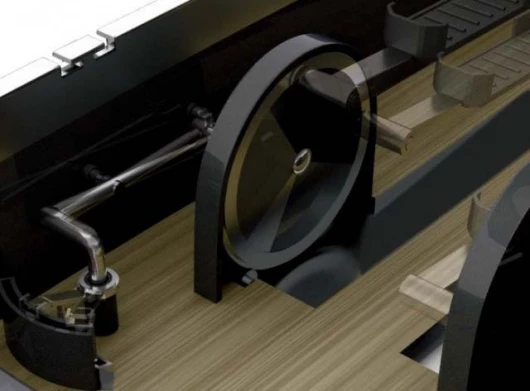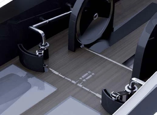 As with oars, I\'m sure that you would just pull on one side to operate one flipper to steer it. Seems easier to handle than oars and you can watch where you are going. Great idea but I can\'t see a forward facing seat.