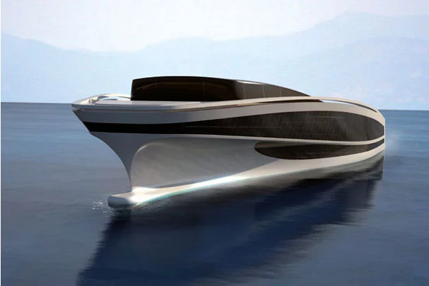 Prior to the launching of the outrageous Wally Island megayacht two years ago, Monte Carlo-based Wally Yachts was probably best known for its millennium-award-winning Wallypower 118, but with the launch of Wally Hermes Yachts (WHY), a joint venture with French high fashion house Hermes, it will almost certainly be known for its first WHY Yacht – it’s a multi-story 58 metre-long, 38 metre-wide floating personal holiday resort with almost an acre of floorspace, an ultra-stable Norwegian Ramform hull, and an energy efficiency so high and carbon footprint so low that it can be sailed to the location of your heart’s desire. It aint fast, but it can cruise at 12 knots in a Force 4 gale and has enough range to cross the Atlantic four times without refueling.