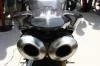 As the world's first true MotoGP replica, the Ducati Desmosedici RR has an impressive specification, at the heart of which beats the record-breaking 989cc L-four Desmodromic engine in twin-pulse configuration. Technical features taken directly from the racing GP6 include the sand-cast aluminium crankcases and magnesium engine coverswhich enclose a cassette type six-speed gearbox and hydraulically actuated dry multi-plate slipper clutch. Additional replications that contribute to the 200hp produced in standard trim are double overhead cams, actuating 4 titanium valves per cylinder, gear driven from a crankshaft which has titanium connecting rods. One feature of the Desmosedici RR which represents a unique ground-breaking design is the 'vertical exit' exhaust silencer, ingeniously hidden in the tail-piece.