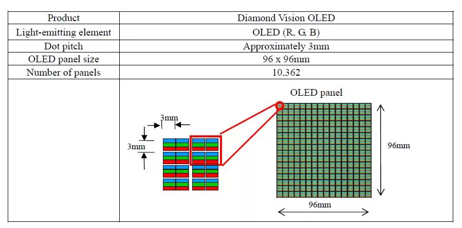To create it, Mitsubishi used its modular Diamond Vision OLED system which was first introduced at CEATEC 2009 in the form of a 155-inch sized OLED display. At the time the company then said that any size screen can be achieved with the use of the technology.