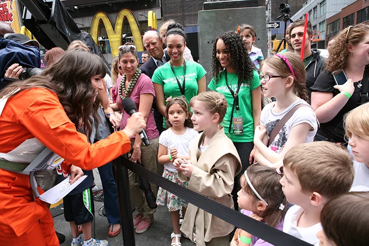 Constructed in Kladno, Czech Republic, to celebrate the upcoming premiere of the Lego Star Wars-based three-part animated series, The Yoda Chronicles, on Cartoon Network, the Lego X-Wing is currently on display in New York’s Times Square. It will be moved to Legoland California Resort in the coming months, where it will remain grounded for the remainder of the year.