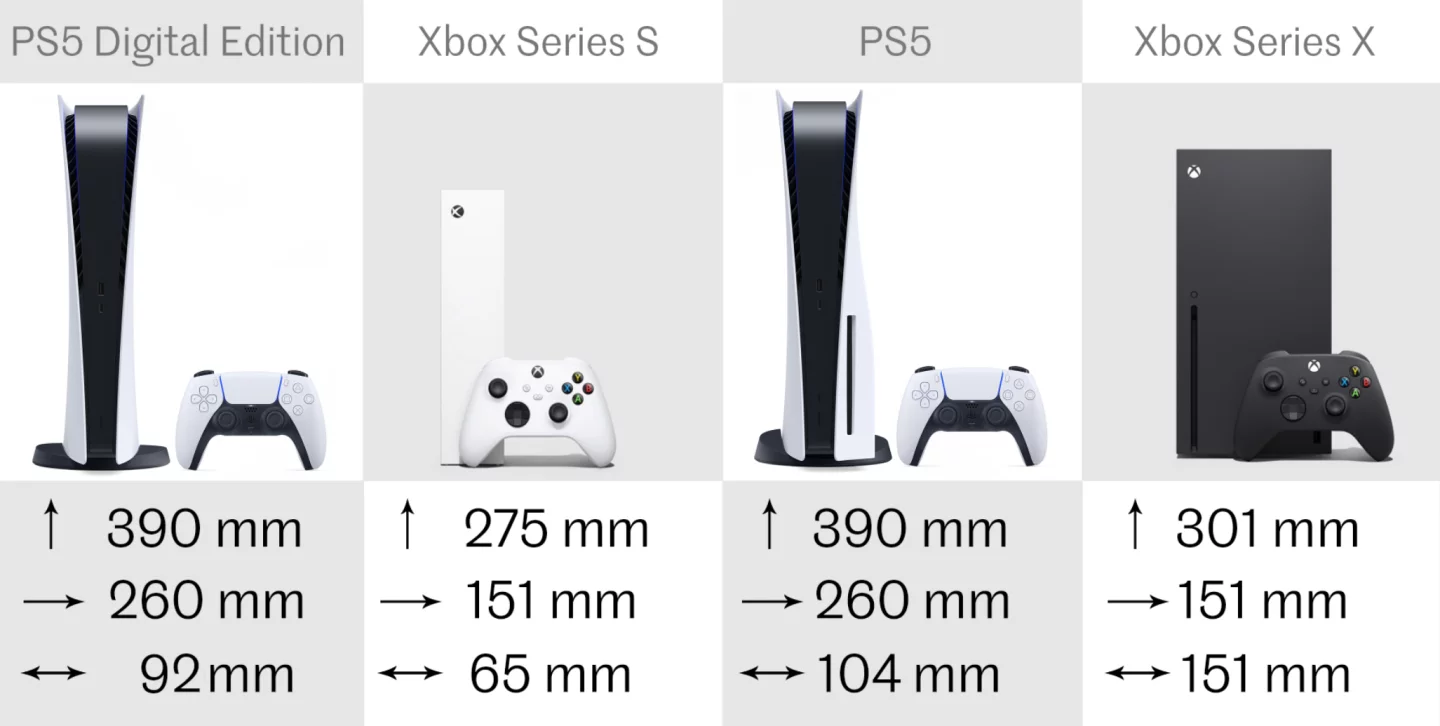 The PlayStation 5, however, is an absolute monster of a unit, the single biggest video game console in decades. Comparison images show that it will dominate your entertainment setup, so hopefully you have plenty of space for it. The Digital Edition is slightly slimmer, but still very tall.