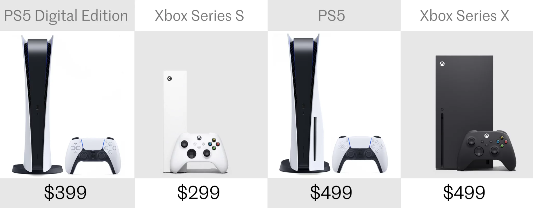 The higher end PS5 and Xbox Series X are tied at $499, which isn’t too bad either considering their power.