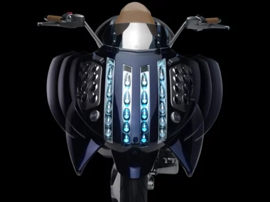 Just like the original Gen-Ryu concept, the new production machine's styling is dominated by a pair of dinner plate-sized circular covers, one on either side of the bike, carrying a turbine-like design which looks set to become a key styling feature for all Yamaha's hybrid machines. These are more than mere styling fancies, however, as they house the key ingredients of the new machine.