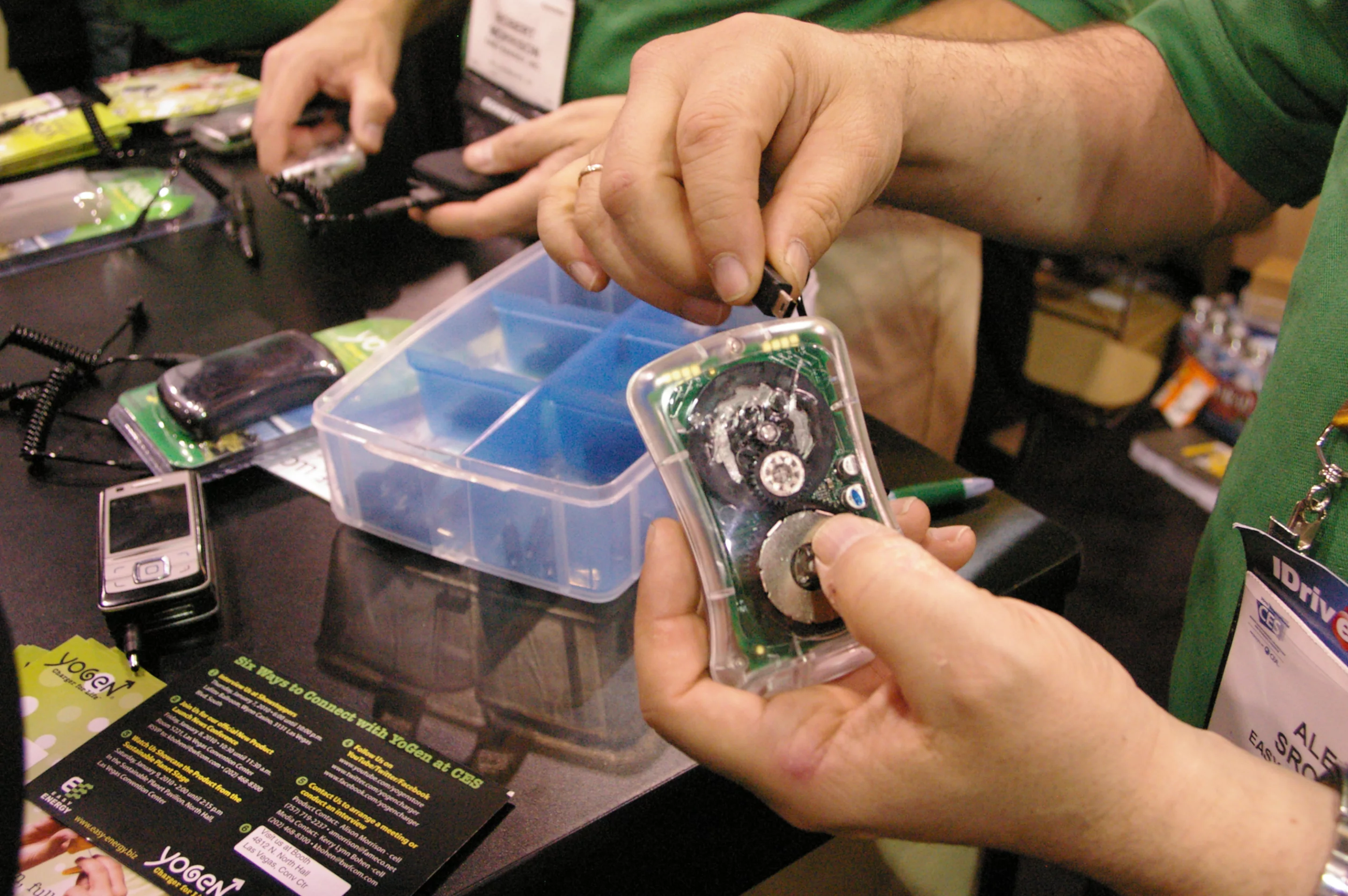 Increasingly, people are carrying a multitude of hand-held devices including perhaps a cell phone, MP3 player and even a GPS and keeping these devices charged whilst on-the-go is an ongoing problem. There could be a simple solution - Easy Energy, Inc has brought its clever YoGen charger to CES 2010. This unique and easy to use, hand-powered charger is a pocket-sized dynamo. It is designed to charge small portable devices such as mobile phones and MP3 players and unlike other battery-free chargers this one doesn't rely on the sun for its power - it uses 'elbow grease' instead.